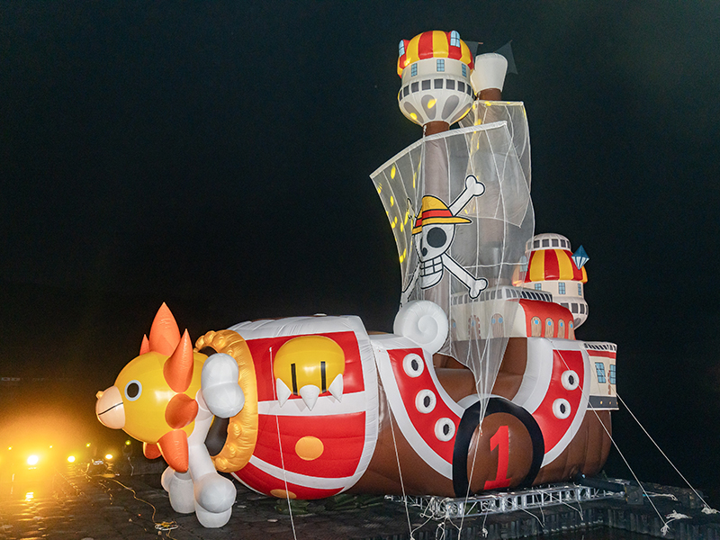 今年的作品是《跨越國境‧絆》。他帶領宜蘭珍珠村三位草編耆老,以及卅餘位台灣的年輕志工,耗時將近一個月,與當地居民一同完成了這件巨作。