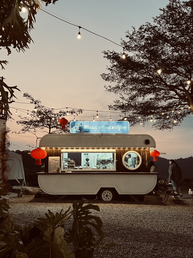 位於台南關子嶺的山中咖啡廳,山裏 Plant Vibes Coffee,接近傍晚時分的時候上山,剛好看到白天跟日落還有晚上的風景。