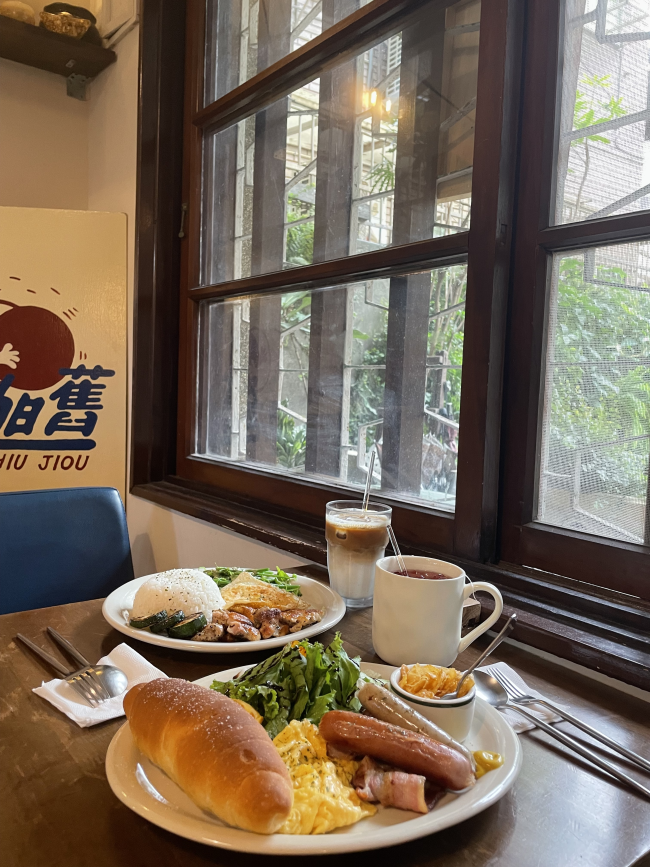 旭舊咖啡 #板橋美食 位於新北市板橋區,在捷運府中站附近要走約10分鐘的路程,一進到店裡,店內擺設及裝潢走的是復古的風格,這間販售分別主打下午茶、甜點以及早午餐類,也有一兩種飯食,我與同行友人分別點的是雞腿定時及早午餐拼盤,飯類給的配菜很多,女生是吃得飽的,早午餐拼盤的份量也是想當豐富,對了!這間店僅限現場候位,所以假日期間都需要等~外面也有位置供客人等候。
