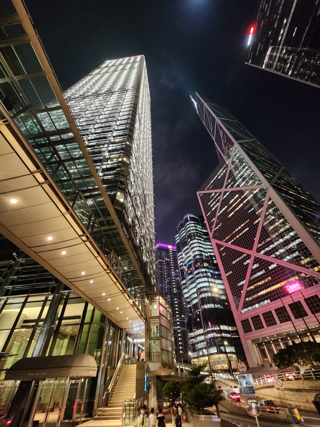 香港中環 – 山頂纜車下,大樓聳立