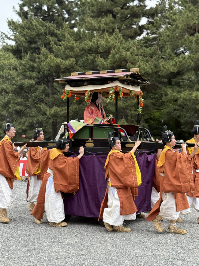 頭戴以葵葉裝飾的帽子,緩緩地從賀茂神社出發,沿著古道進行長達數公里的遊行。