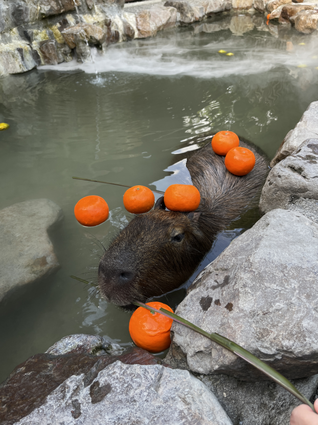 宜蘭很著名的動物園區 有很多水豚君 還真的可以把橘子疊在他頭上