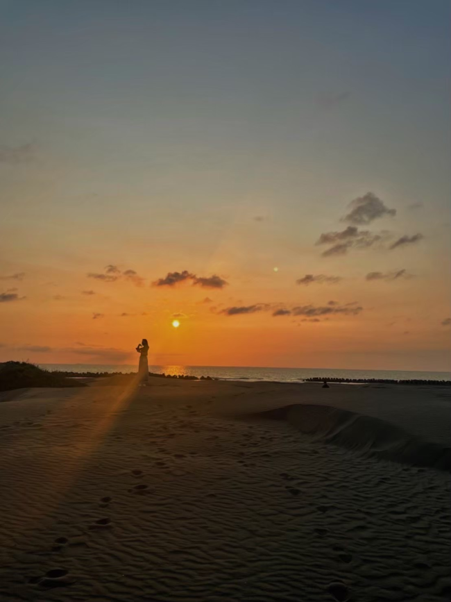 台南武聖燈塔,天氣好的時候基本上都會有夕陽加上傍晚的時候也不會太熱,還有一些涼風,這裡是非常隱密的景點,因為要抵達這裡的路程非常的小基本上是只能一台汽車車可以通過,很多人會來這裡拍婚紗,加上這邊有一大片像沙漠一樣的沙灘,可以在台灣看到這種沙漠沙灘真的很特別