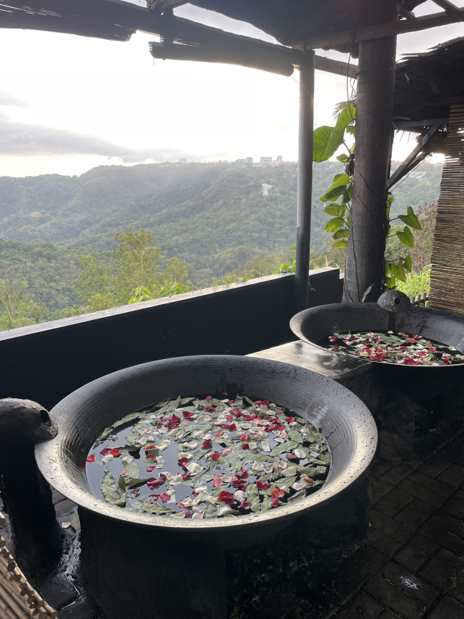 這是位於菲律賓 Tagaytay 的 La VeryOl’s Kawa Spa💆 他們泡湯特色是用柴火去燒,另外還能加購一整壺牛奶倒進去,整個就是皇后級的享受♨️ 一邊美滋滋的泡湯、一邊欣賞遠處火山湖景!