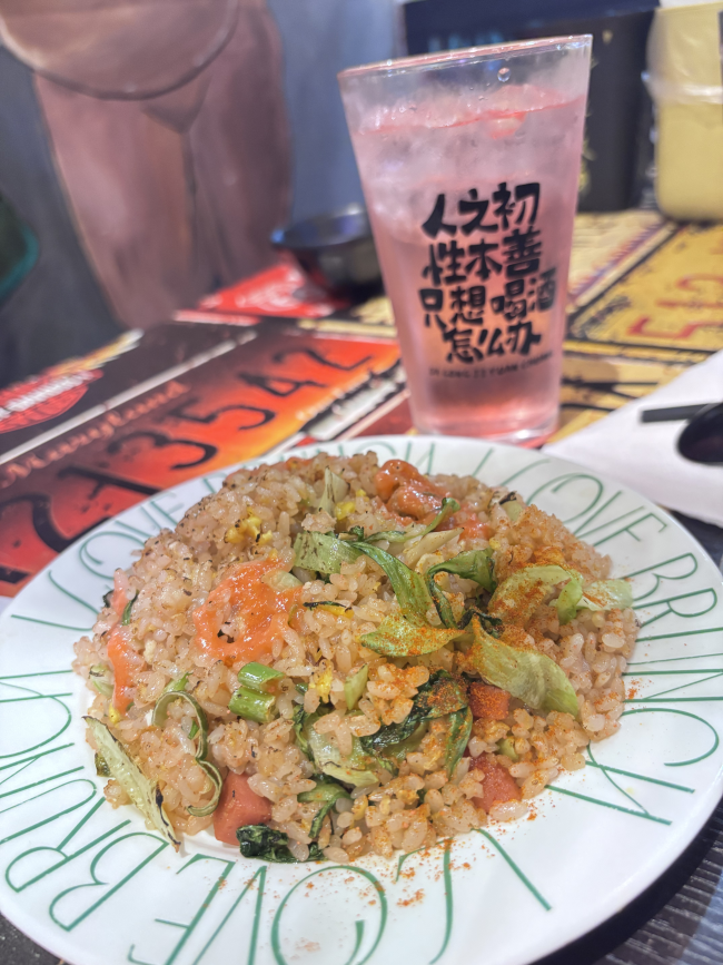 🌶️✨【第一次挑戰韓式泡菜炒飯!】✨🌶️ 最近給自己一個小任務:嘗試一種沒吃過的料理類型。這次選的是——#韓式泡菜炒飯! 🍳 這道炒飯滿滿的泡菜香氣,一上桌就讓人食指大動,辣度不算太高但後勁十足,還加了青菜和香腸,口感層次豐富~ 🍹 配上一杯冰冰的氣泡飲(還是粉紅色的!),超解膩,重口味吃完也不會膩到爆表。 🔍 餐廳的整體風格也很有趣,桌上還有復古車牌做裝飾,牆上塗鴉也超有個性,像走進漫畫裡一樣。 📌 嘗過才知道,其實我以前錯過了這麼多美味!雖然以前怕泡菜的酸味,但這次真的讓我改觀了! 🧠 小心得:偶爾跳脫舒適圈,嘗試新東西,也是在生活裡創造小驚喜的方式!
