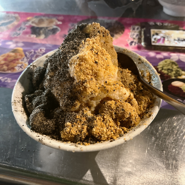 熱熱的麻糬有芝麻和花生口味 搭配上粗顆粒的碎冰 不管夏天還是冬天 兩人來上一碗剛剛好 👍