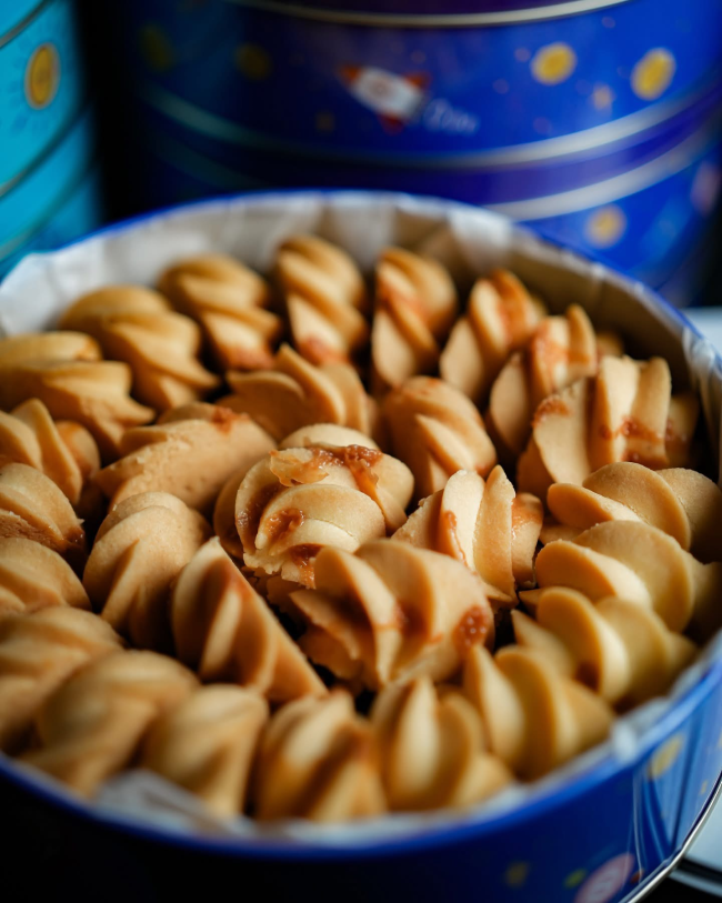 以藍紫宇宙系鐵盒打開味蕾的冒險,每一片手作曲奇都像繞行星軌的甜蜜旋渦,濃郁奶油香、酥鬆口感,是最純粹的幸福味道。
