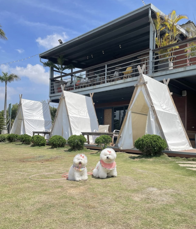 台中大肚-用上自然膳食堂 有一大片草原可以讓毛小孩跑來跑去,外面設計帳篷風格可以用餐很好拍 也很特別~ 但夏天來應該會很熱,也有室內用餐可以選擇 還不錯的景點