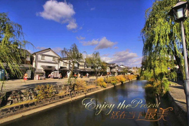這張照片捕捉了日本倉敷美觀地區的寧靜之美。古老的柳樹沿著運河兩岸垂下,輕輕搖曳,倒映在水面上,營造出如詩如畫的景致。傳統的黑瓦白牆日式建築座落河畔,錯落有致,在藍天白雲的映襯下顯得格外古樸。溫暖的陽光灑落,讓整個畫面充滿了溫馨與平和的氛圍。漫步在此,彷彿時間都慢了下來,讓人能夠放鬆身心,享受當下的寧靜與美好。