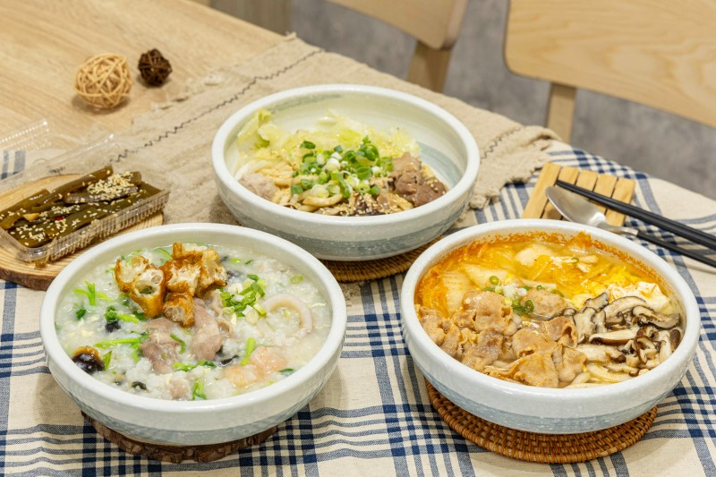 像是集結海鮮與肉品的「招牌粥寶」、以酸辣湯頭搭配彈勁麵條,帶來韓式風味「韓式泡菜豬肉烏龍麵」,還有喜歡拌麵香氣的人,絕不能錯過「蔥燒烏龍拌麵」。