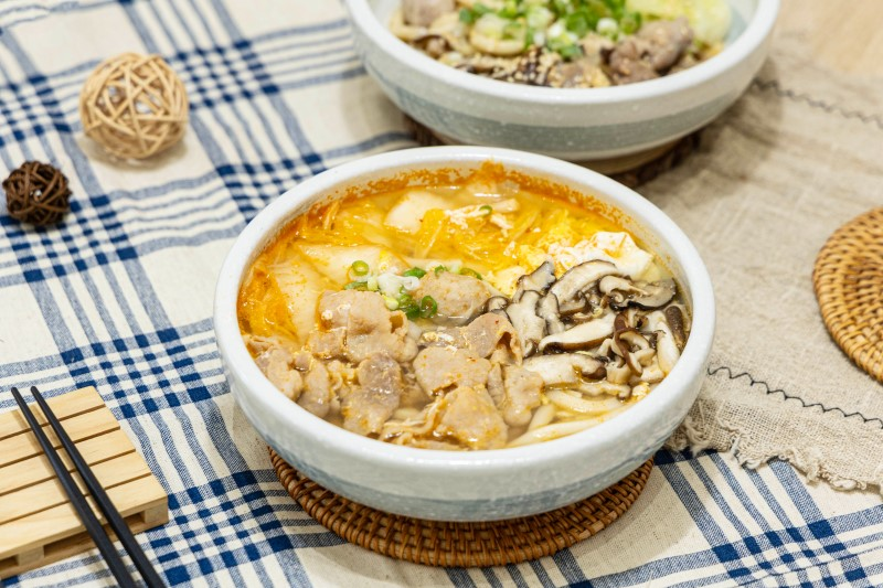 入口時,豬肉片的油脂在熱湯中被喚醒,柔嫩中透著鮮美,與泡菜的酸辣形成對比;同時香菇釋出的木質香氣,讓整碗麵多了幾分沉穩厚度。