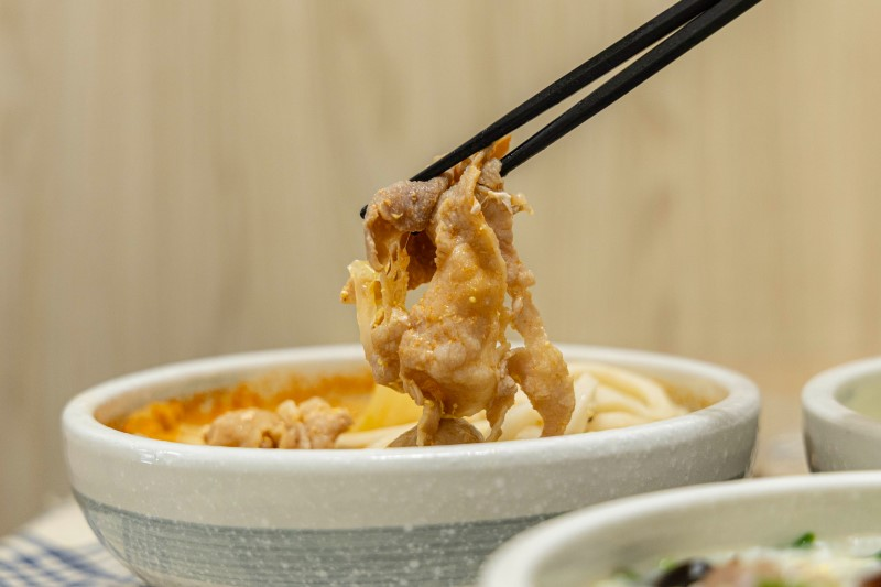 筷子一夾,烏龍麵的厚實彈勁立刻展現存在感,緊緊鎖住湯頭精華,帶來厚重卻不燥的口感。