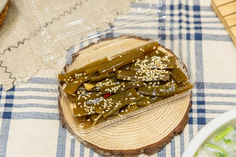 這道小菜以新鮮海帶根切條,經過涼拌調味後,散發出自然的海味清香。