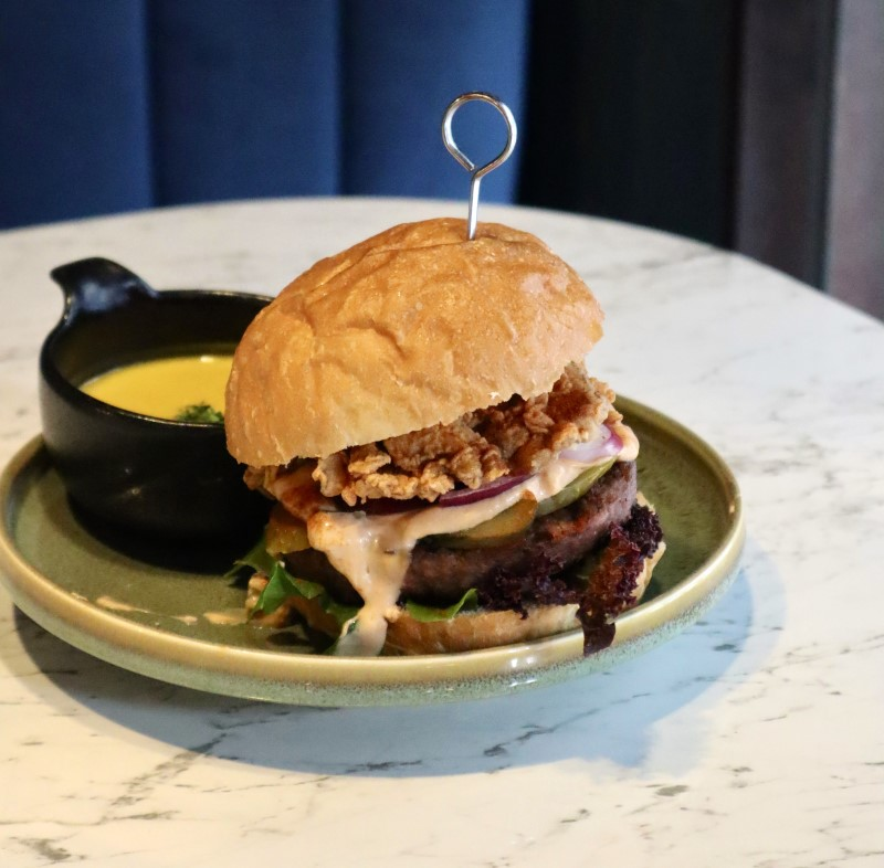 漢堡皮酥脆,尺寸份量十足,咬下去層次豐富,完全顛覆對植物肉的刻板印象。