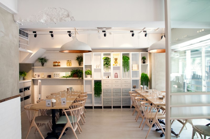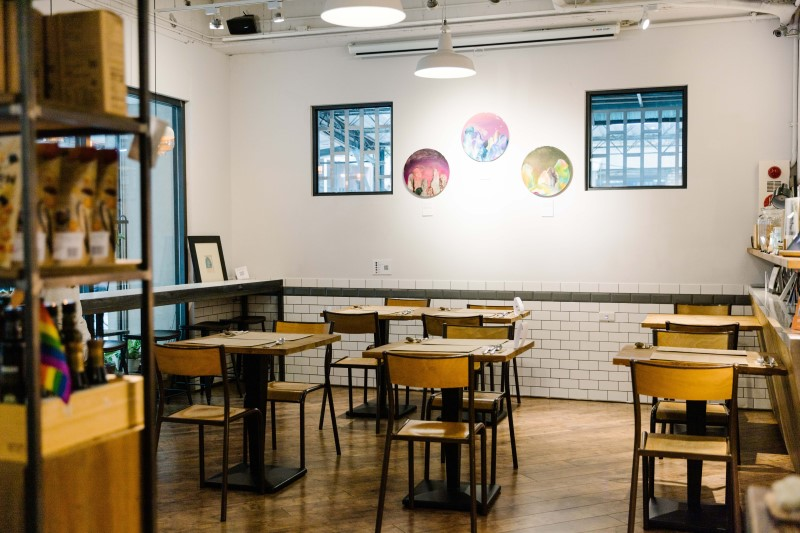 餐廳位於捷運忠孝復興站附近,店內以潔白磚牆構成,搭配綠植點綴,低調卻充滿生氣。