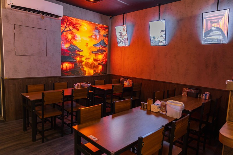 牆面上特別訂製的日本風景燈畫框,讓人有置身京都小巷居酒屋的錯覺。