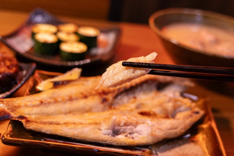一上桌就能聞到淡雅的炙烤香氣,午仔魚一夜干外皮微焦帶脆,內裡卻鎖住了細緻油潤的魚肉。筷子輕輕一夾,雪白的魚肉層層剝落,入口是鹹香中帶著自然鮮甜,完全展現魚本身的原始風味。搭配一旁的椒鹽或檸檬汁,更能突顯清爽層次,無論是單吃或配酒,都是日式餐桌上最經典的好滋味。