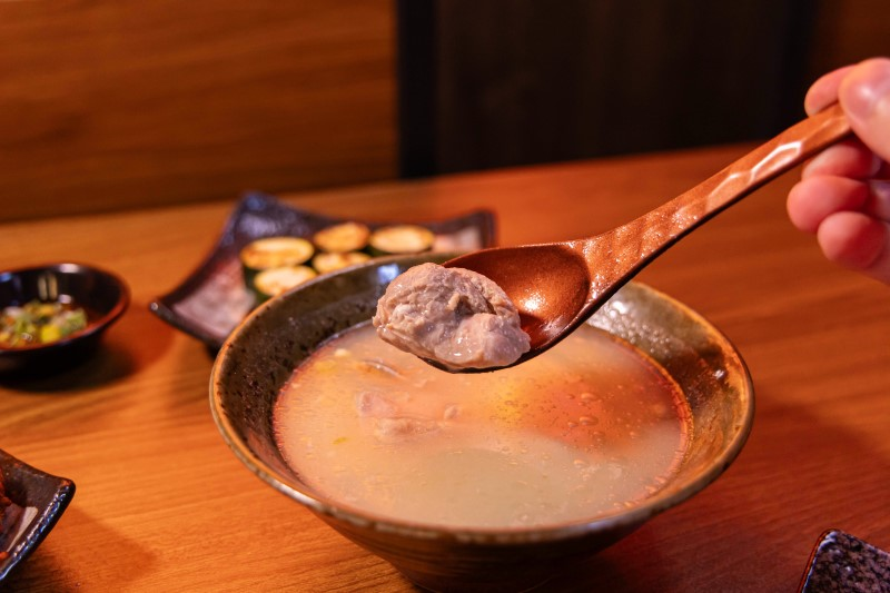 湯頭以大量蒜頭慢火熬煮,入口帶有自然的甘甜與微微辛香,濃郁卻不嗆口,讓人忍不住一口接一口。