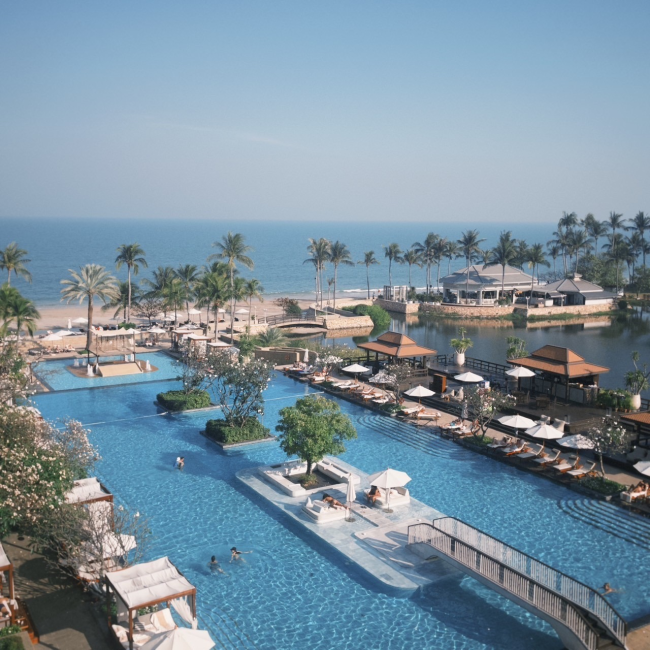 華欣為皇室度假勝地。 沒有曼谷過度擁擠的人流 有別於巴達雅的商業 – 尚未污染的淨土 安安靜靜純粹原始 無邊際泳池+綿延沙灘海岸 沙灘騎馬 月光海 日出日落 好吃的早餐 下午茶 晚餐 游玩泳 配上一本書 適合放空慢步調的城市 – 離首都曼谷200多公里,車程約三小時